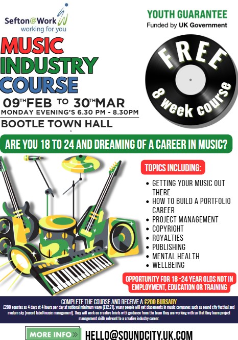 Participants who complete the course will receive £200. They will also have the chance of work experience at creative local music, entertainment and events companies such as Liverpool Sound City and Modern Sky UK.