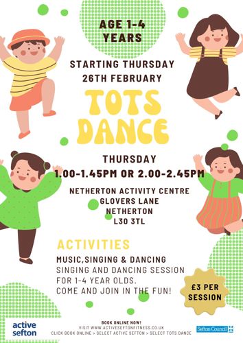 The sessions run in term time and are bookable online at an introductory cost of £3 per class. If you are new to the Active Sefton programmes, you will need to register for an account before booking – instructions for this can be found at: